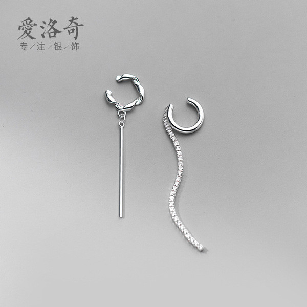 s925 sterling silver twist unique clipon chic simple chain piercing earrings