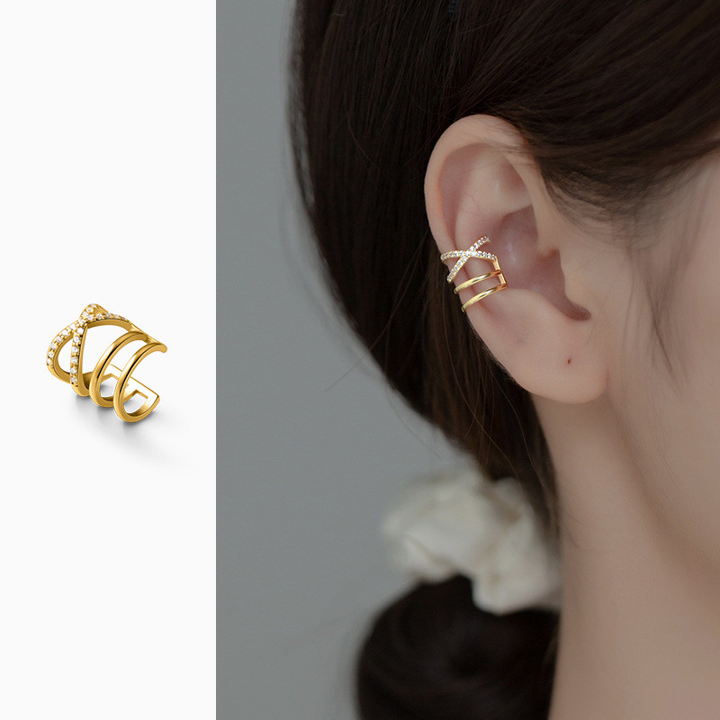 s925 sterling silver doublelayer wrap bar piercing earrings