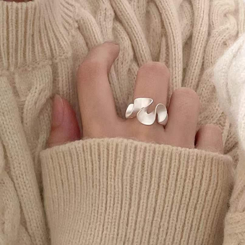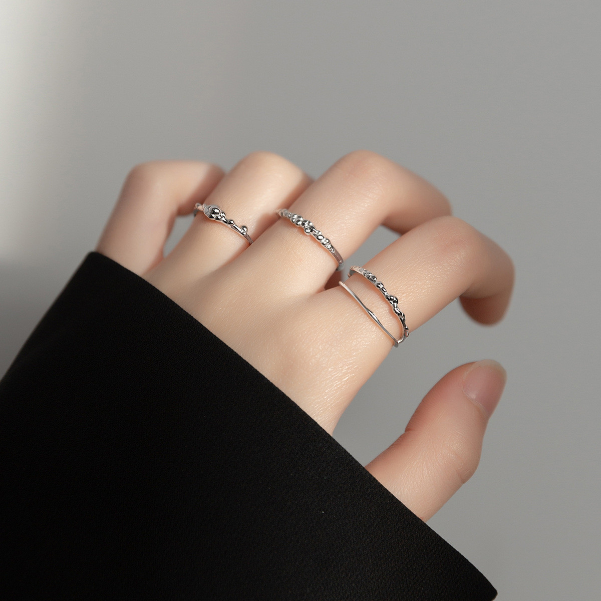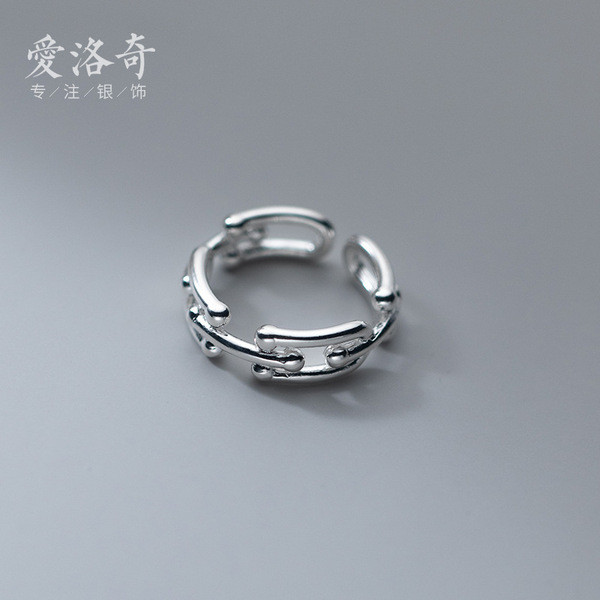 s925 sterling silver fashion silver hollowed rope adjustable ring
