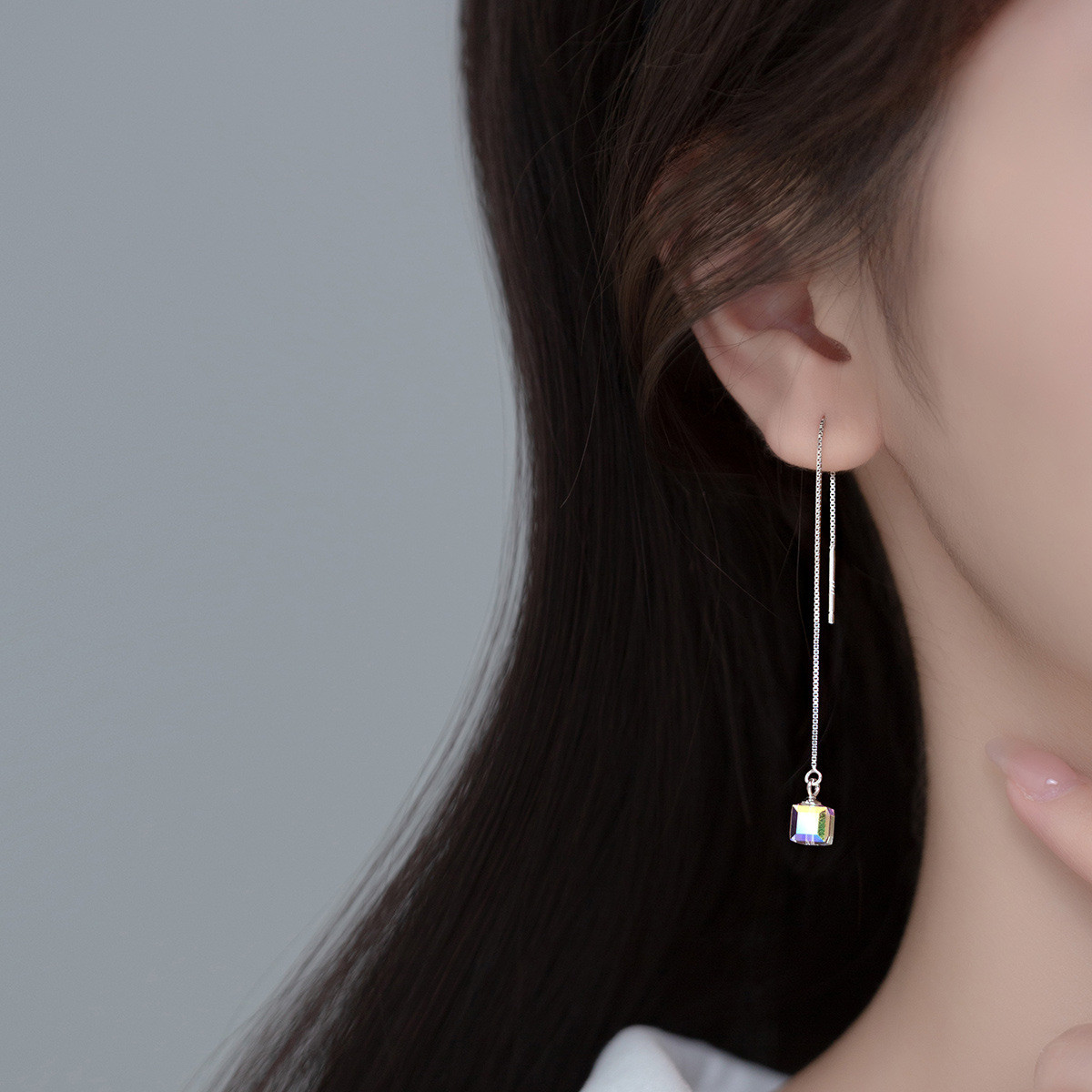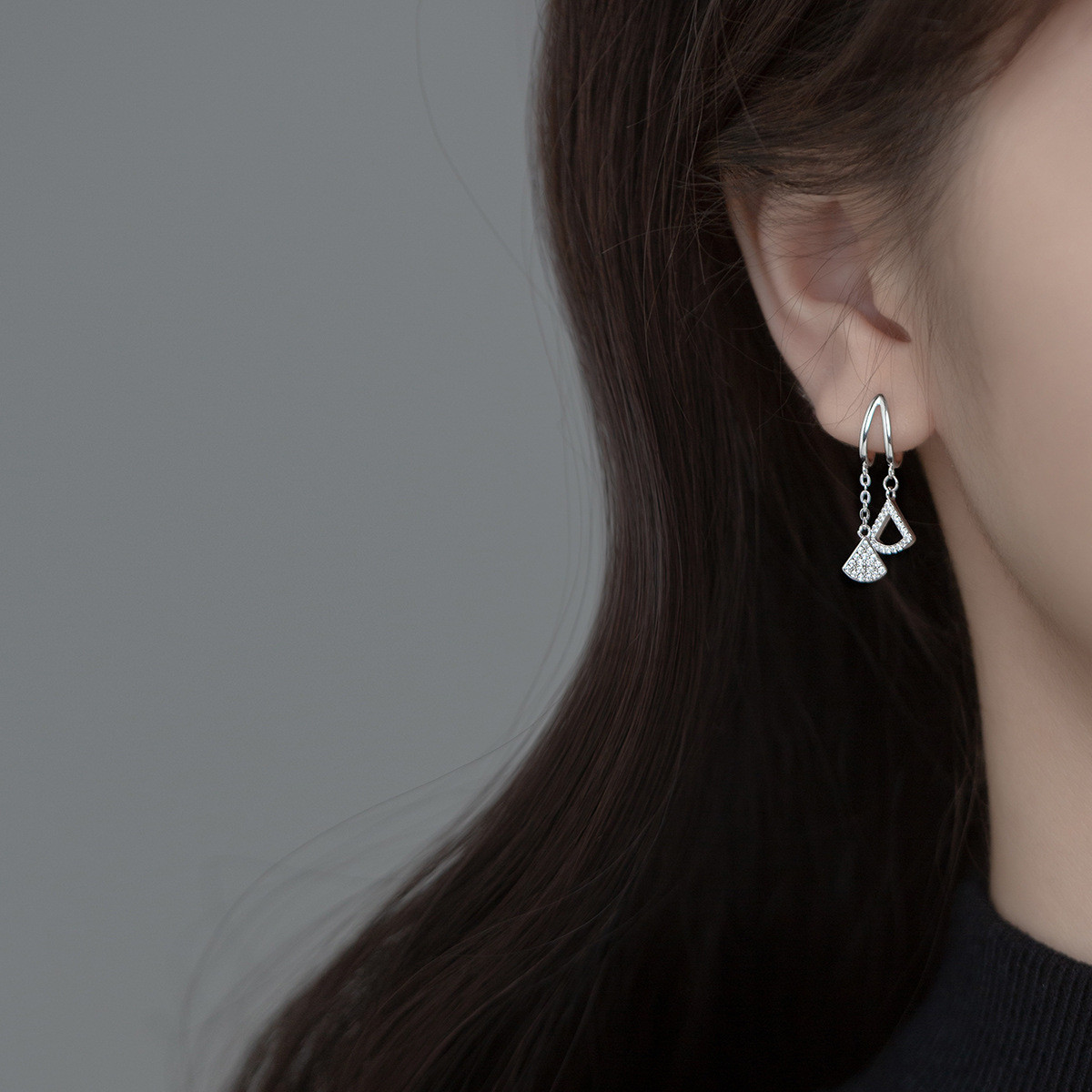 s925 sterling silver cute simple rhinestone asymmetri earrings
