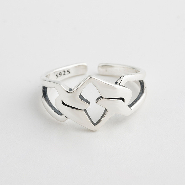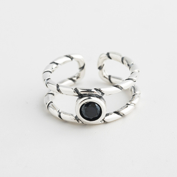 s925 sterling silver vintage cute braided silver doublelayer ring