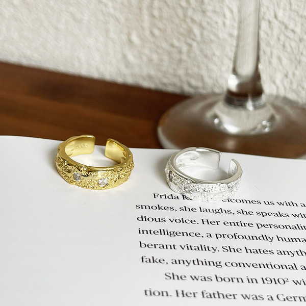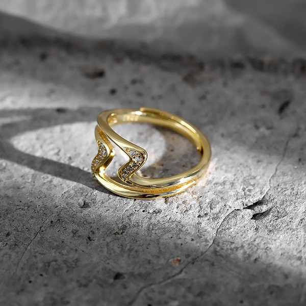 s925 sterling silver trendy simple hollowed rhinestone heart ring