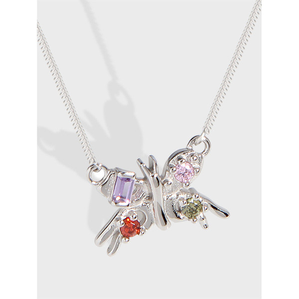 s925 sterling silver doublelayer asymmetric geometric rhinestone necklace