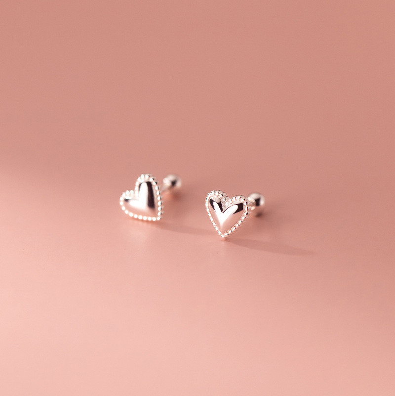 s925 sterling silver simple rhinestone heart asymmetric earrings