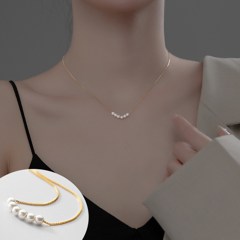 s925 sterling silver doublelayer design pearl simple necklace