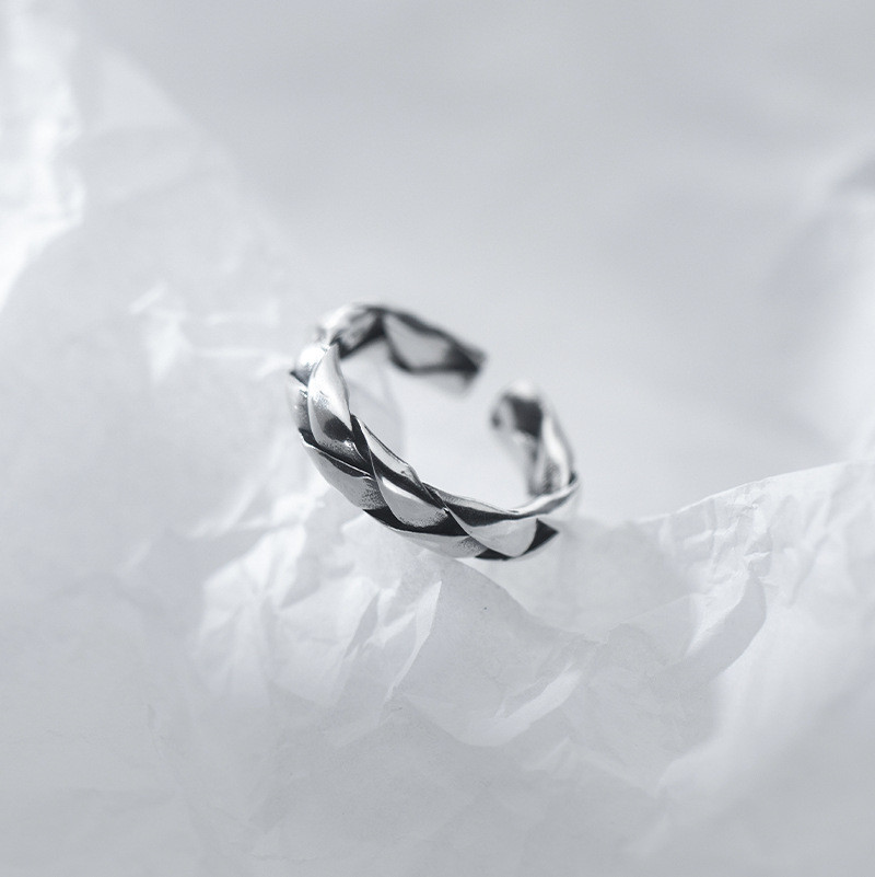 s925 sterling silver sweet trendy simple square stretchy rope cute ring