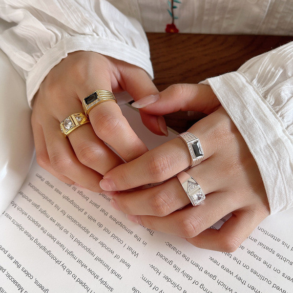 s925 sterling silver adjustable simple unique silverU fashion silver ring