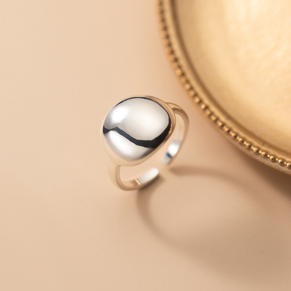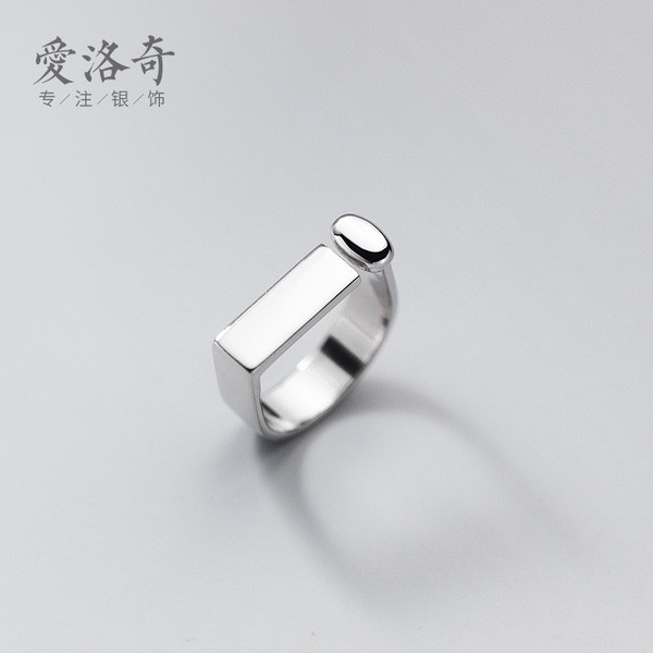 s925 sterling silver silver hexagon hollowed geometric chic adjustable ring