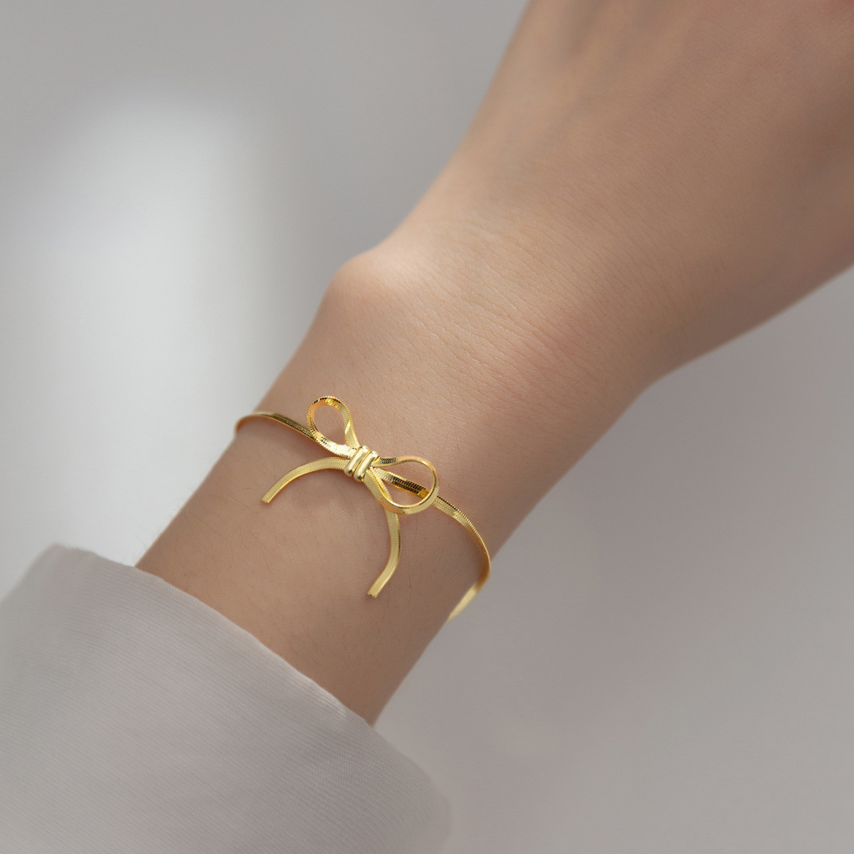 s925 sterling silver unique chic bow snakechain simple charmbracele bracelet