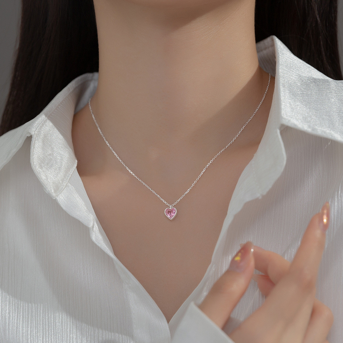 s925 sterling silver fashion simple chic heartshape pendant necklace