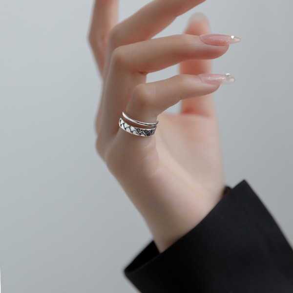 s925 sterling silver adjustable geometric trendy silver simple ring