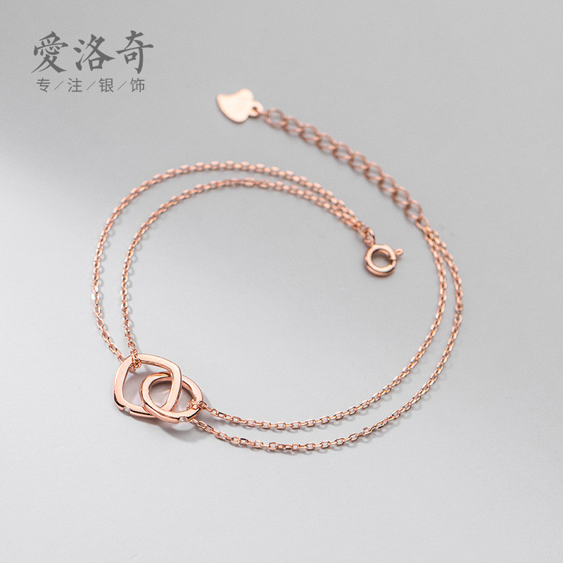 s925 sterling silver simple doublelayer geometric square anklet trendy bracelet