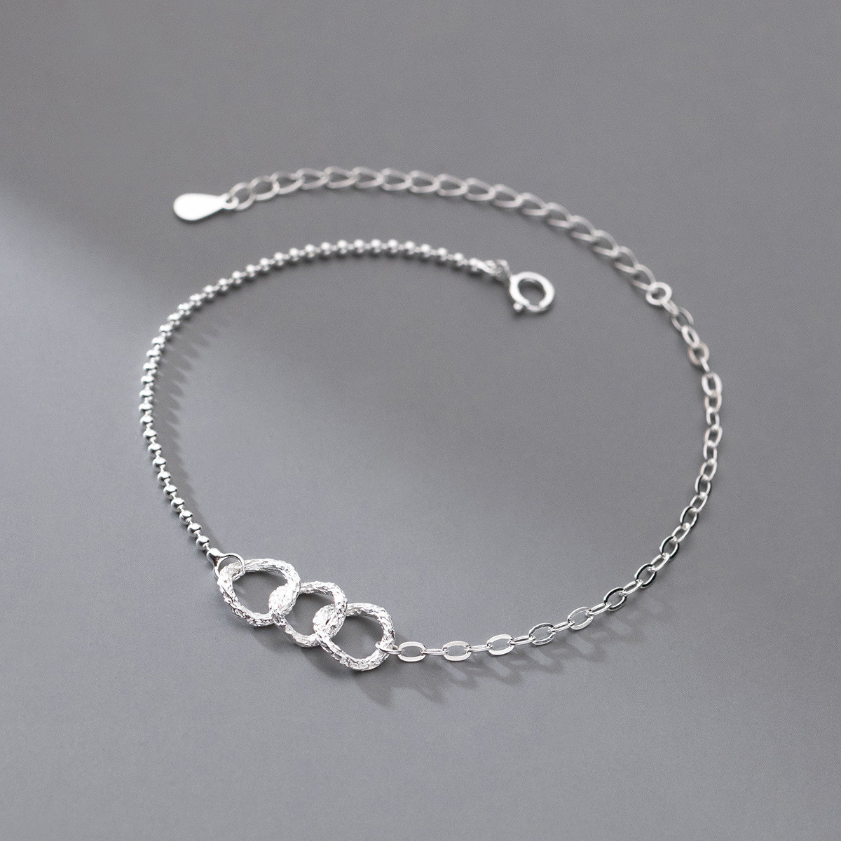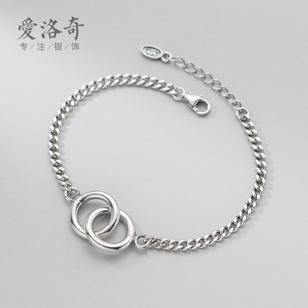 s925 sterling silver trendy simple circle silver charm fashion bracelet