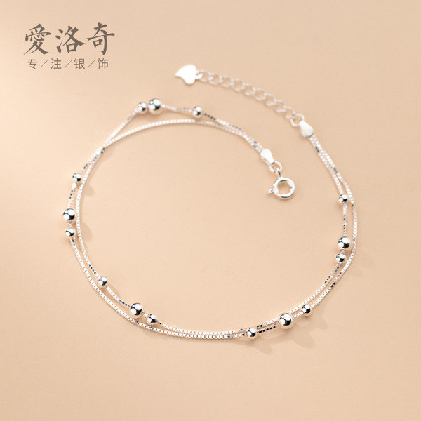 silver2mm simple sterling silver bead charm bracelet