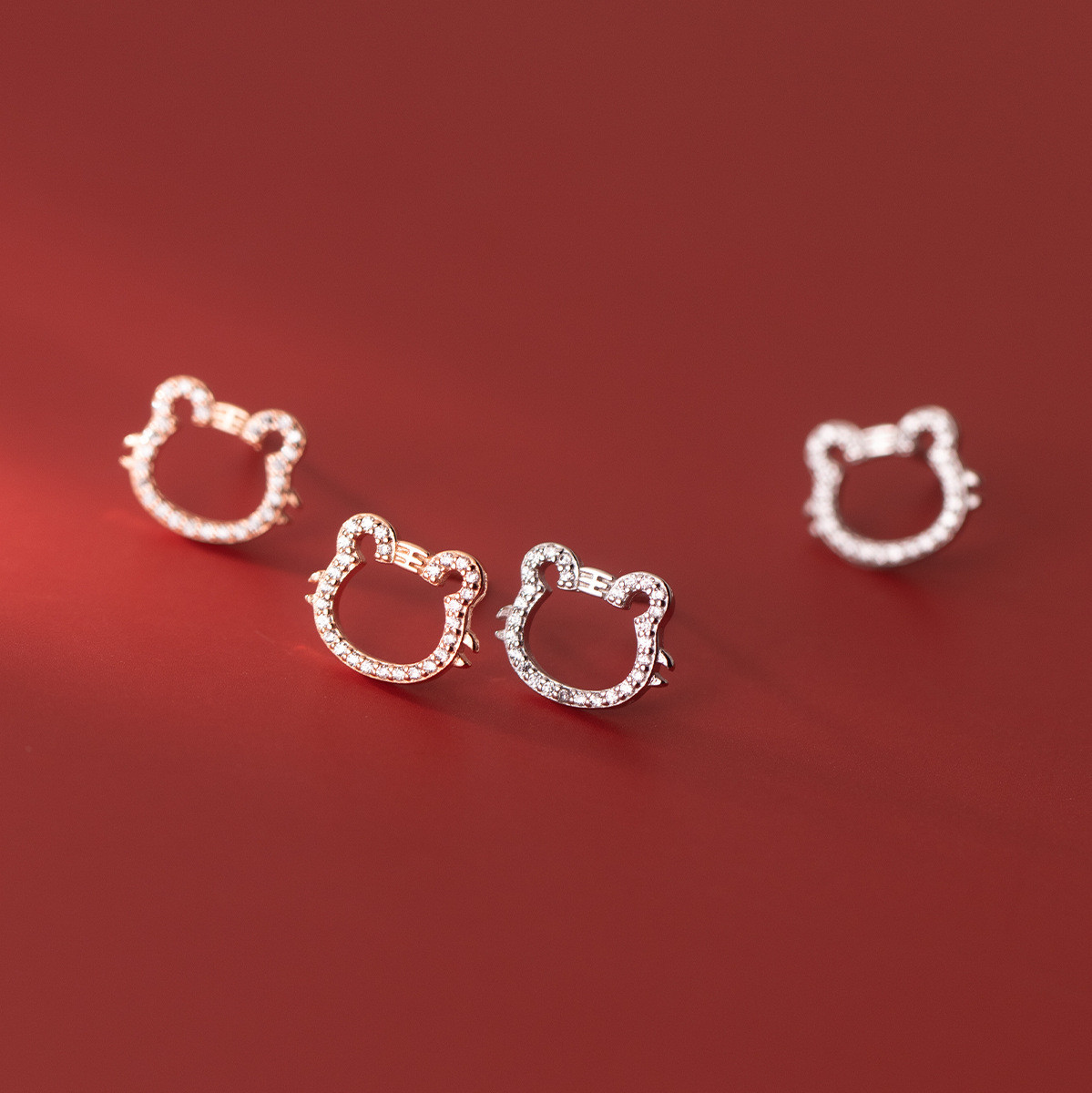 s925 sterling silver tiny piercing rhinestone cute earrings
