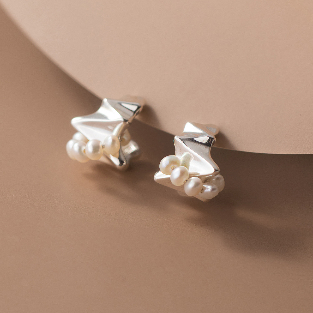 s925 silver fashion simple rhinestone stud earrings geometric earrings