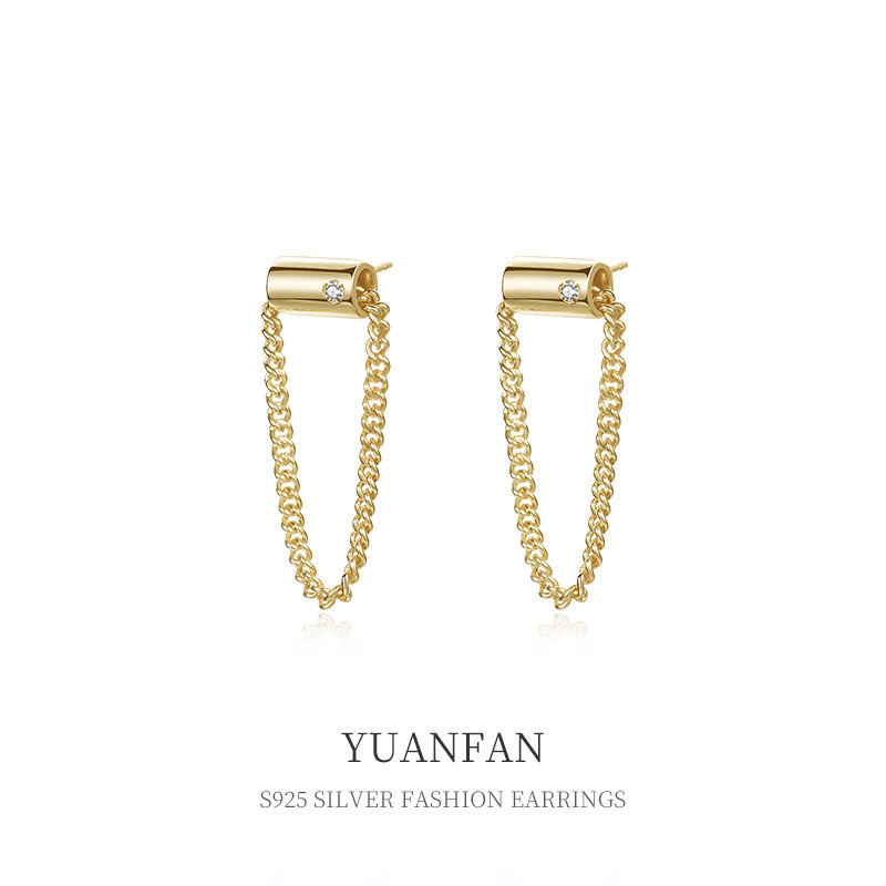 s925 sterling silver chain heart simple earrings