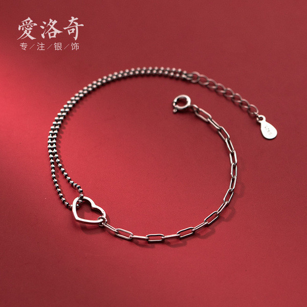 s925 sterling silver unique fashion asymmetric chain pearl chic simple bracelet