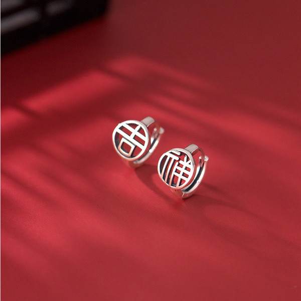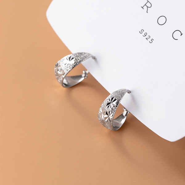 s925 sterling silver fashion simple hoop unique cut earrings