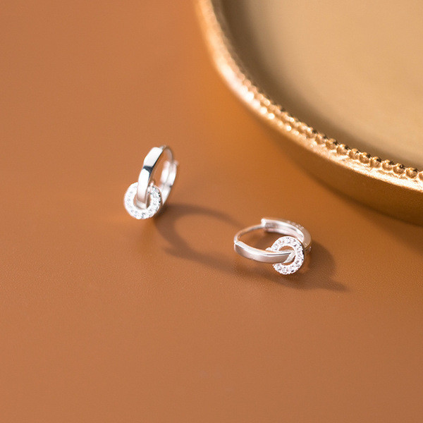 s925 sterling silver simple rhinestone unique fashion circle earrings