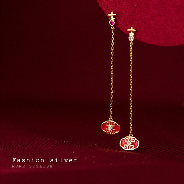 s925 sterling silver long teardrop chain earrings