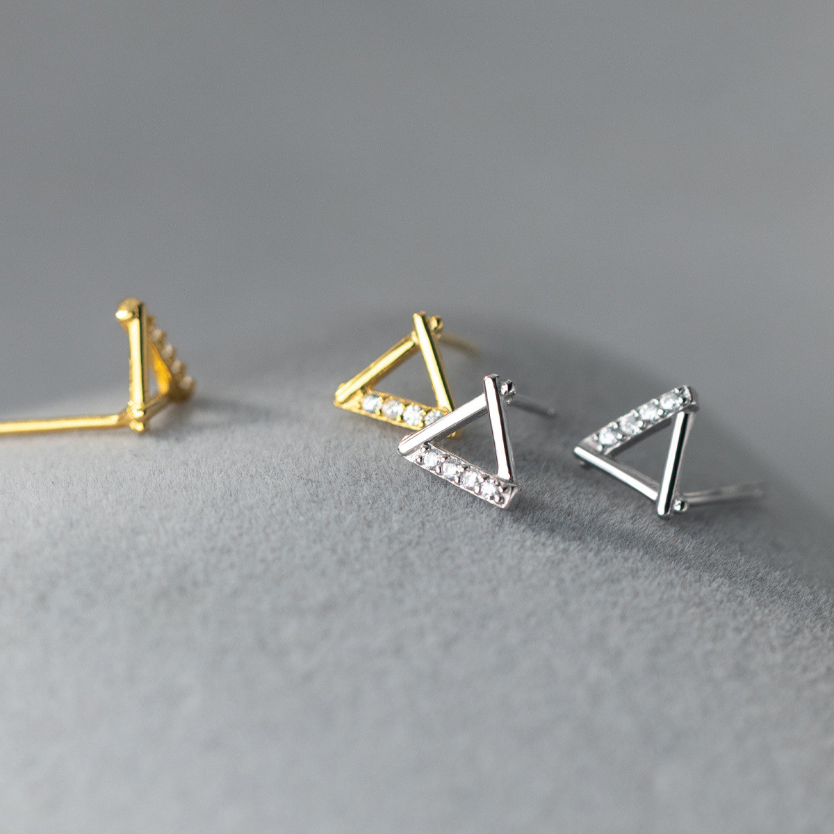 s925 sterling silver square rhinestone hollowed stud design earrings