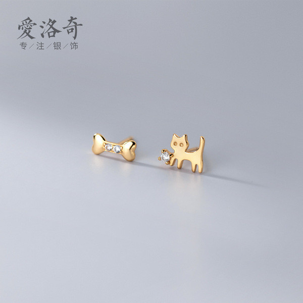 s925 sterling silver simple trendy sparkling asymmetric moon deer sweet earrings