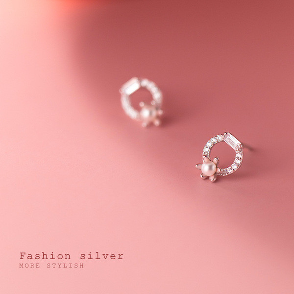 s925 sterling silver cute chic stars sweet simple rhinestone hoo earrings