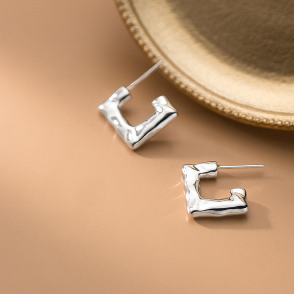 s925 sterling silver vintage silver copper unique fashion square earrings