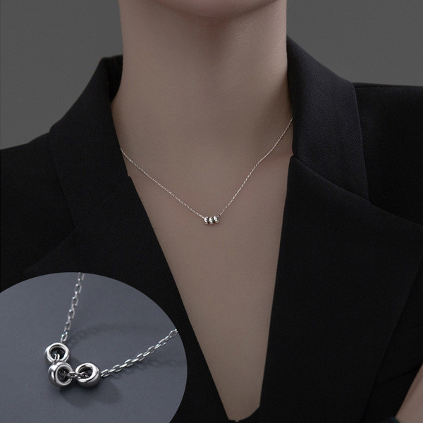 s925 sterling silver simple fashion rhinestone circle ball necklace
