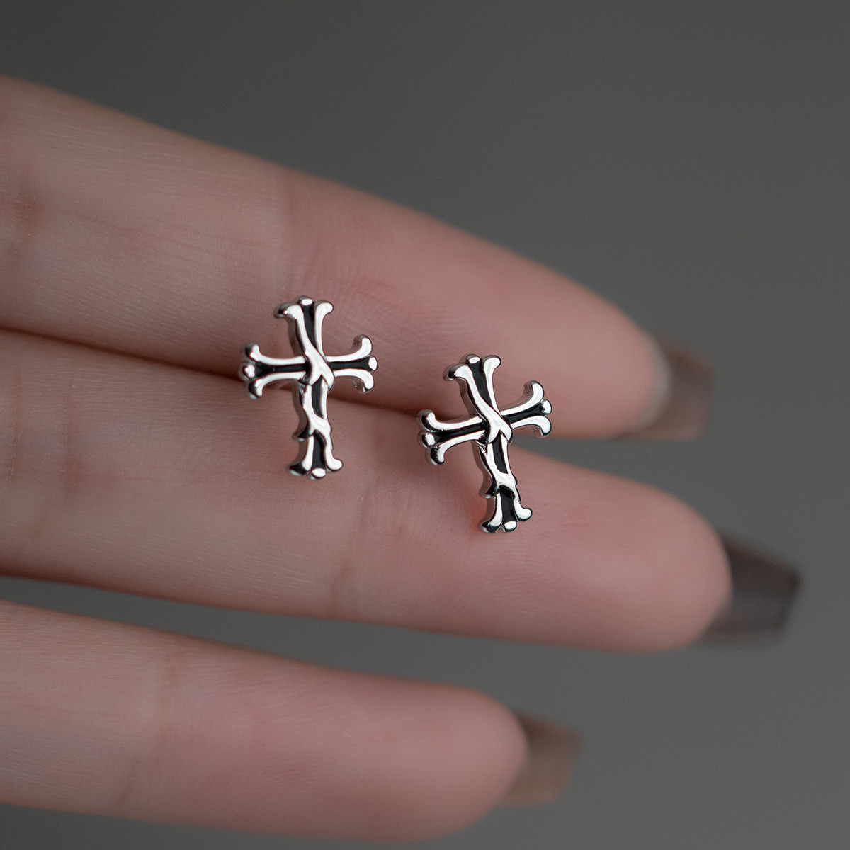 s925 silver black stud simple elegant earrings