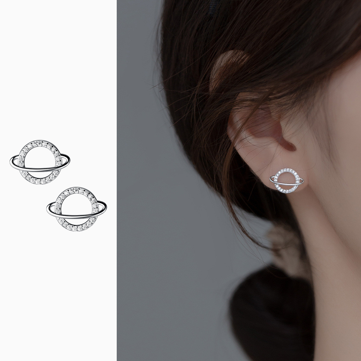 s925 sterling silver sweet white rhinestone sun moon asymmetric crescent earrings