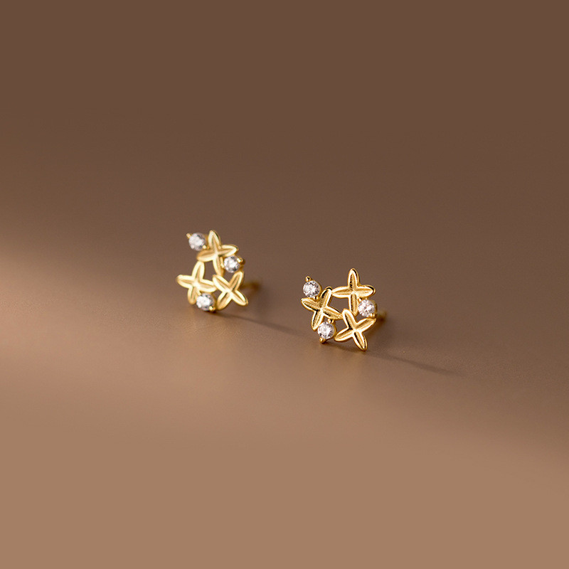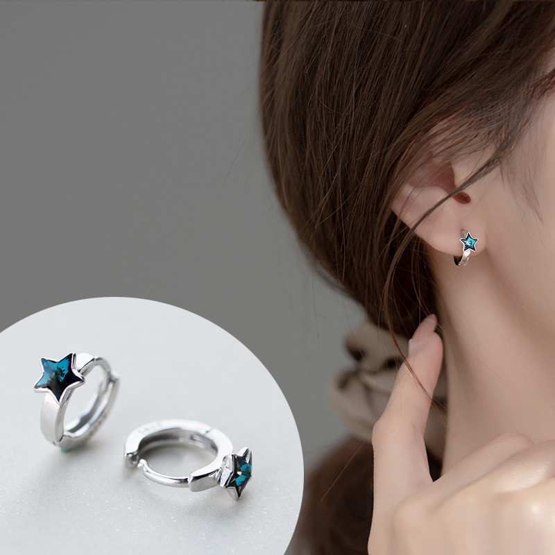 s925 sterling silver fashion rhinestone stars dangle earrings
