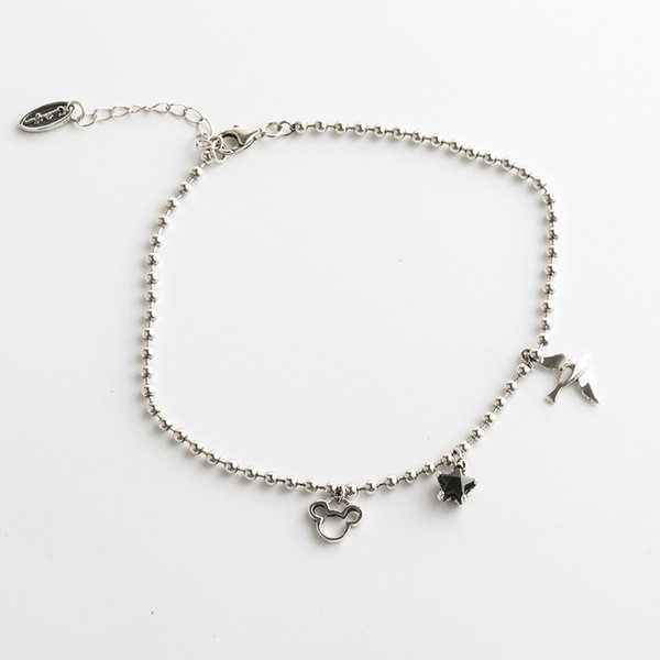s925 sterling silver doublelayer black rhinestone stars silver cute bracelet