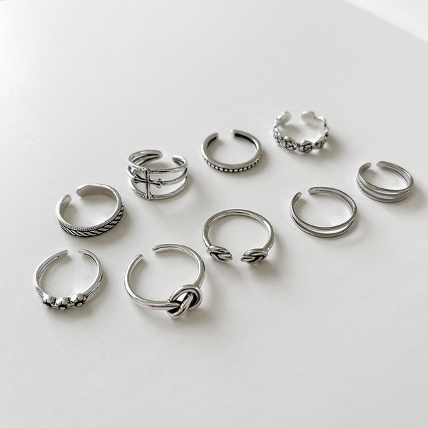 s925 sterling silver simple vintage black cubiczirconia adjustable ring