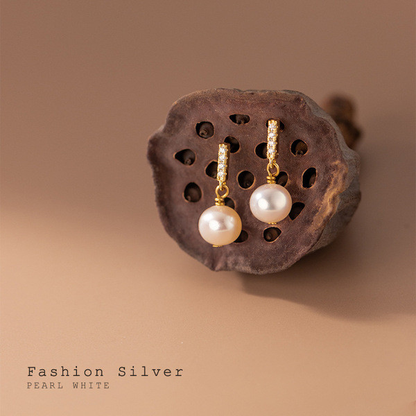 s925 sterling silver circle pearl earrings