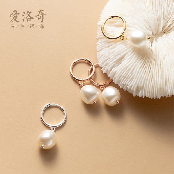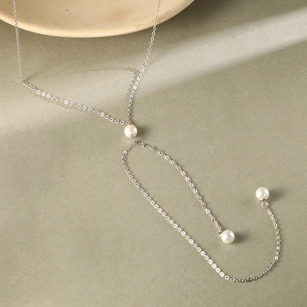 s925 sterling silver bear pearl short sweet chic necklace