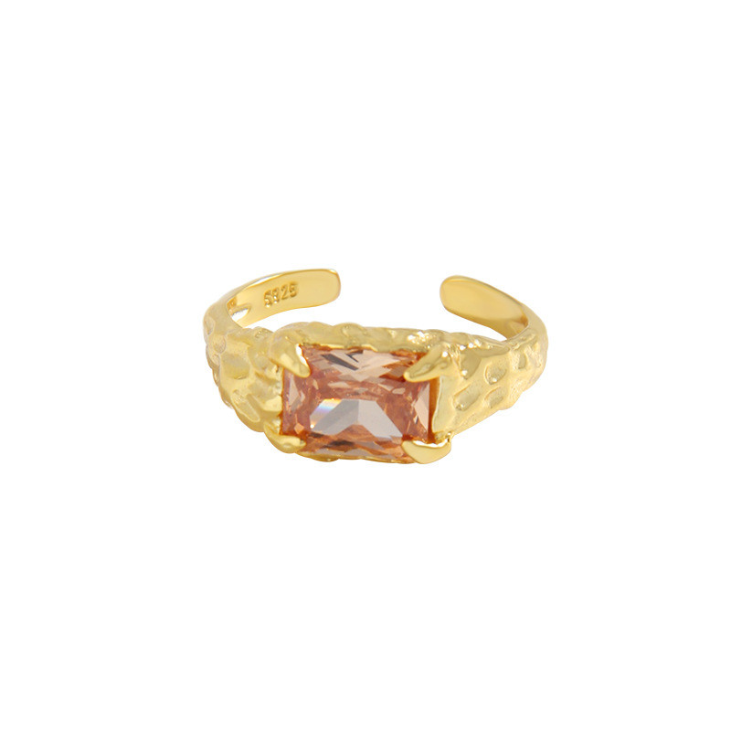 s925 sterling silver hollowed rhombic adjustable ring