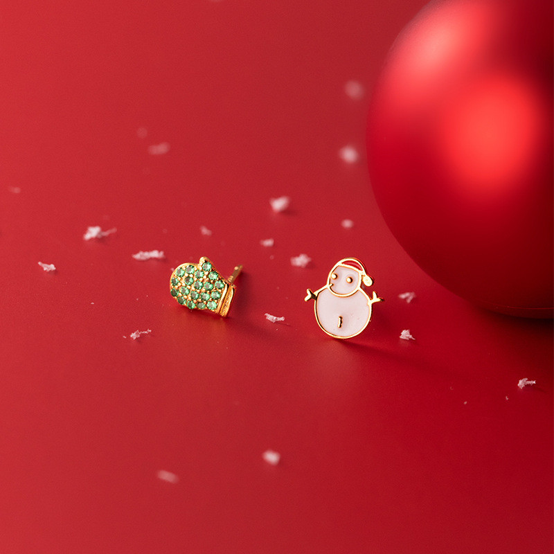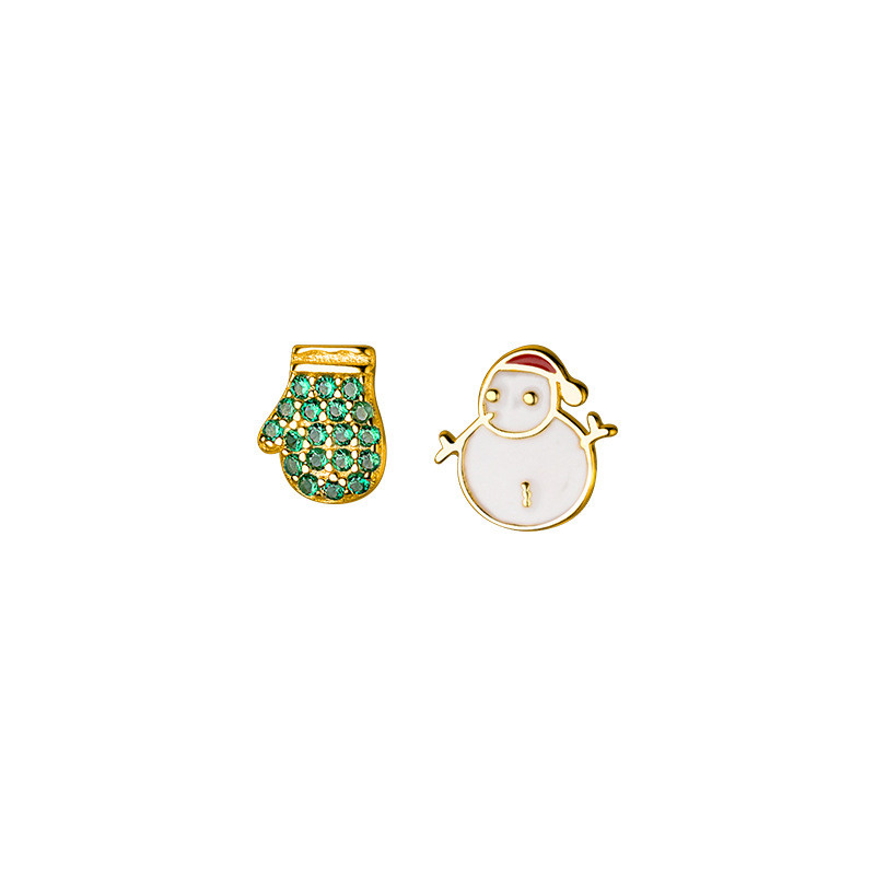 christmas sweet asymmetric christmas tree rhinestone small deer earrings
