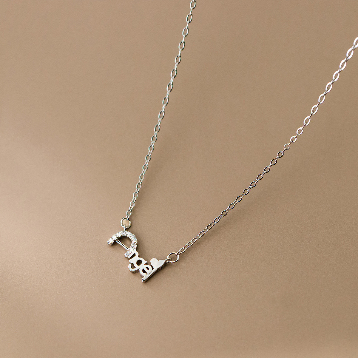 s925 sterling silver chic simple trendy sweet rhinestone necklace