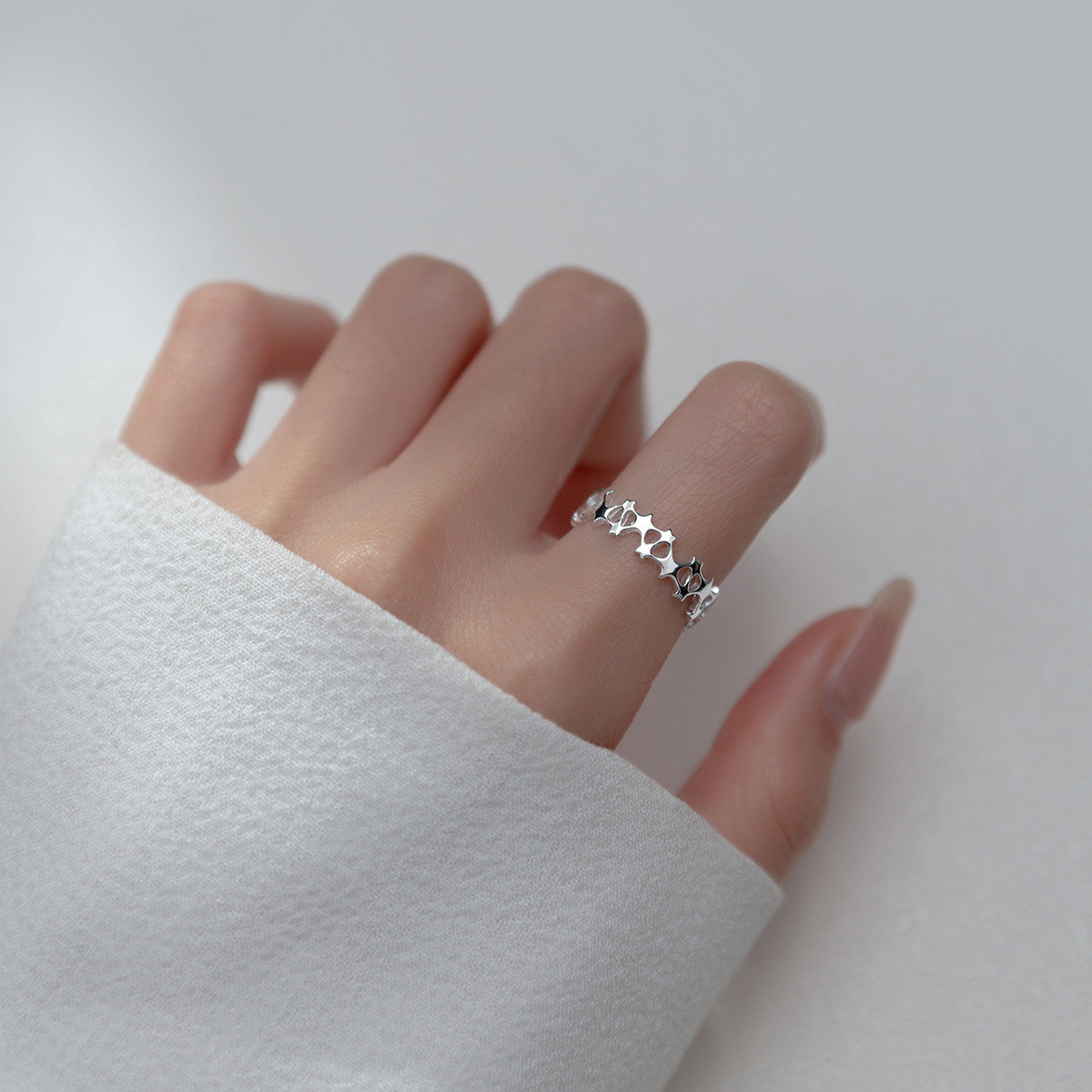 minimalist hollowed quality s925 sterling silver adjustable ring
