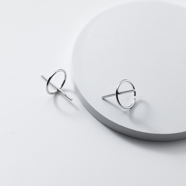 s925 sterling silver simple metal rhinestone wide initial silver earrings