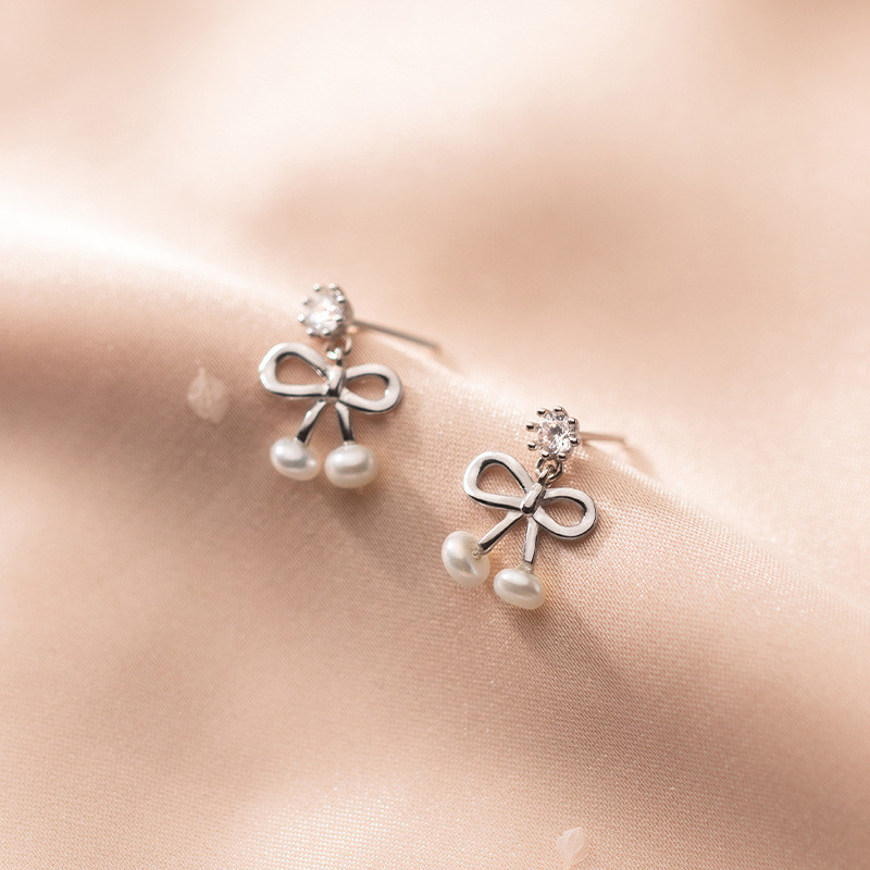 s925 sterling silver simple trendy rhinestone shell pearl sweet earrings