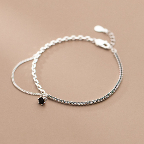 s925 sterling silver charm trendy doublelayer heart big simple heartshape bracelet
