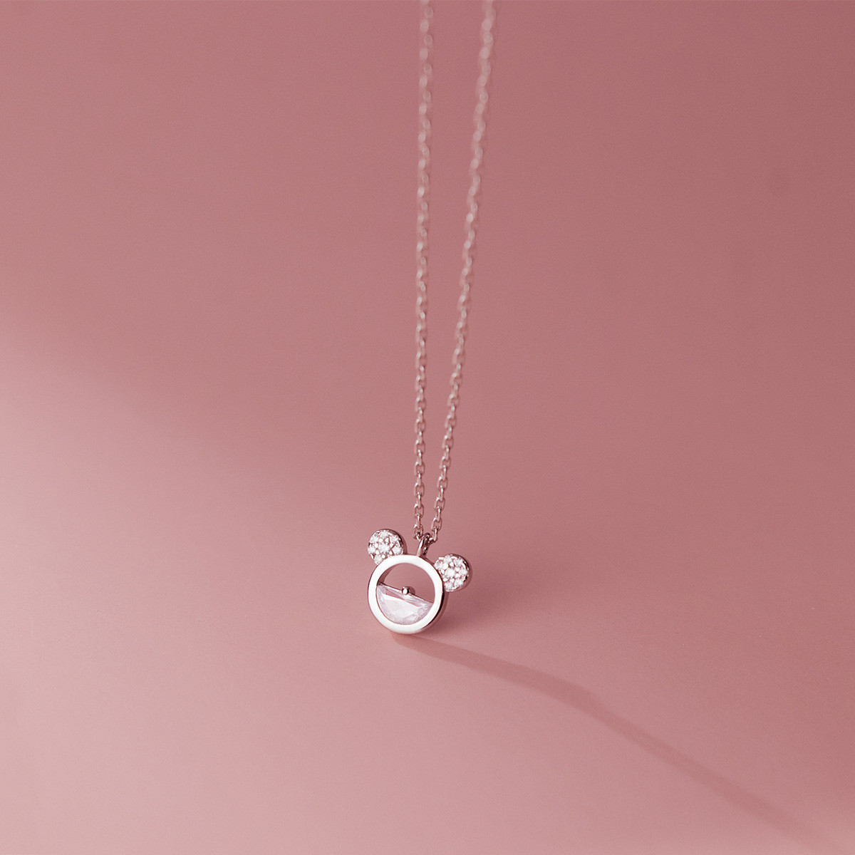 s925 sterling silver simple fashion rhinestone circle pendant sweet chic necklace