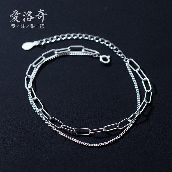 s925 sterling silver simple geometric charm bracelet