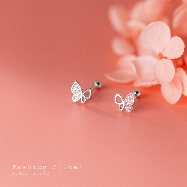s925 sterling silver simple metal rhinestone wide initial silver earrings